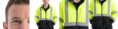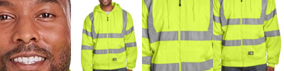 HVF023 Men's Hi-Vis Class 3 Color Block Full-Zip Hooded Sweatshirt