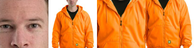 • Three-piece hood with drawcord